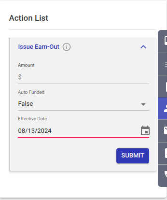 To achieve the same in LMS, we have an action at a loan level - “Issue Earn Out”.