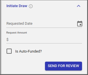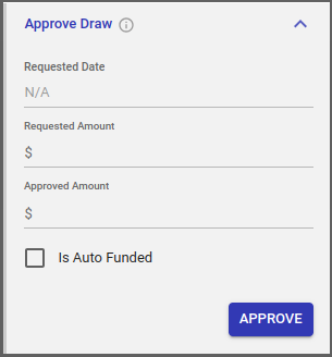“Requested Date” and “Requested Amount” will be pre-filled based on what was entered during the Initiate Draw. Approved Amount is mandatory.