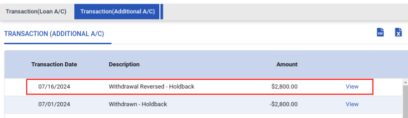 Loan in Service | Active | Suspend LOC | Only a LOC with an “Active” status can be suspended. No new draws can be initiated now. This action is prohibited if any draw is in “Verification” status. |