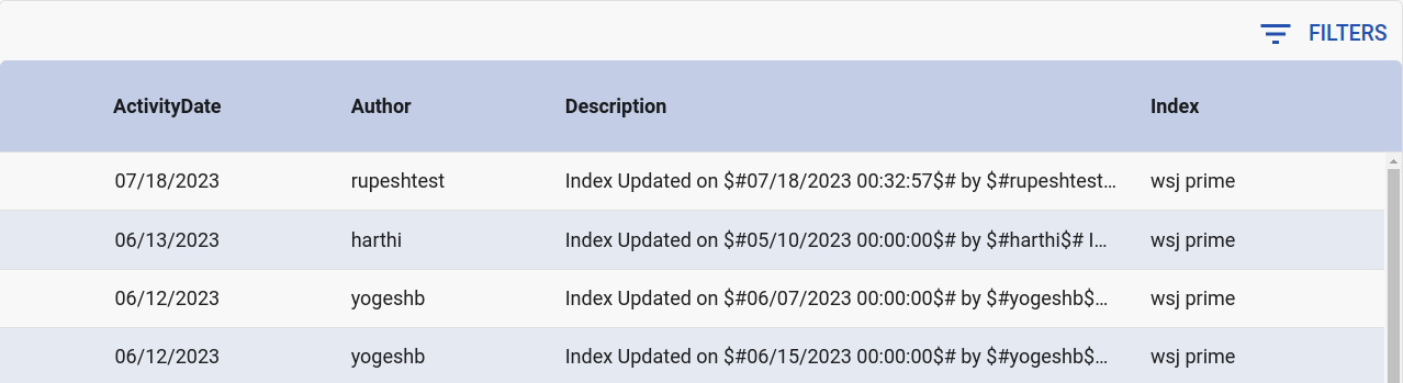 History of index changes is maintained and displayed as shown in the above UI