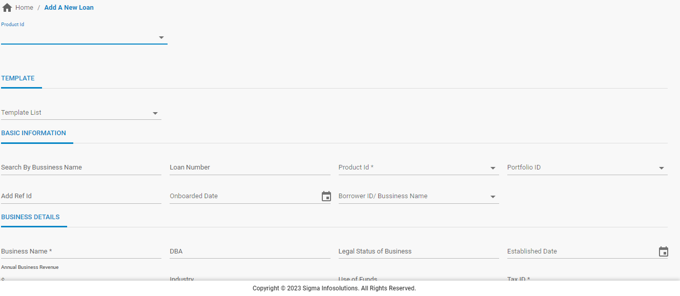- It is possible to onboard a loan to LMS by using a template or adding all the data of the loan. Templates can be created by the users with pre-set data so that the loans can be onboarded quickly with minimal data entry.